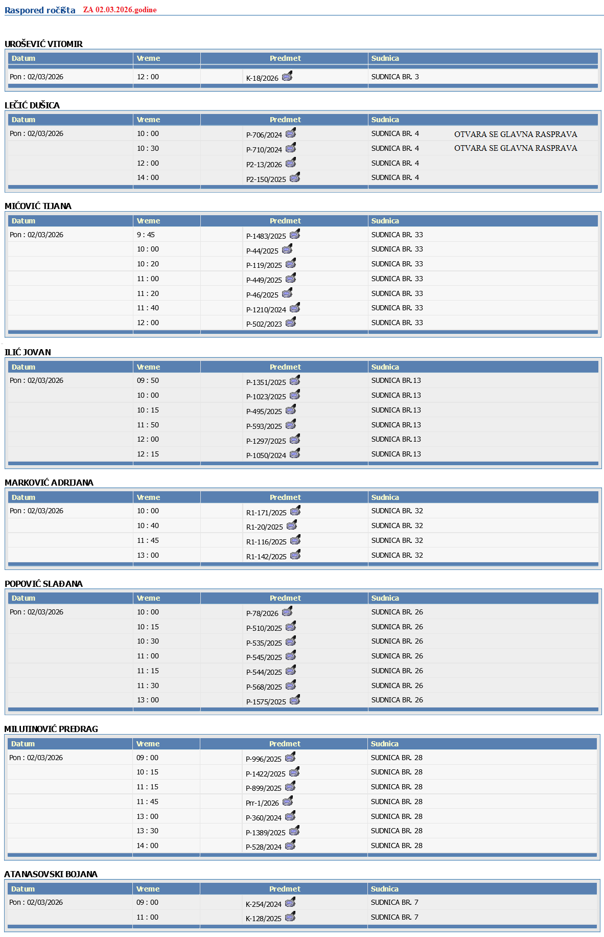 Нерешени предмети на дан 31.01.2026. године