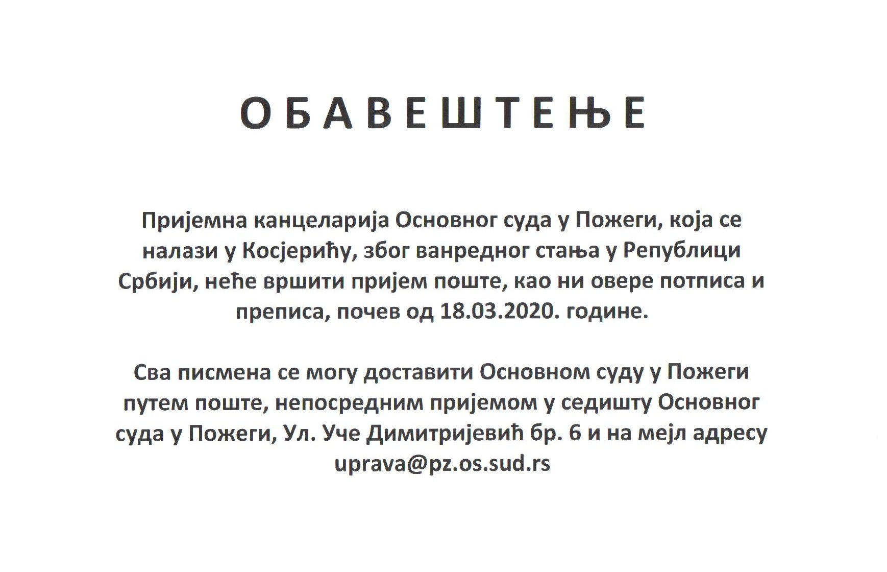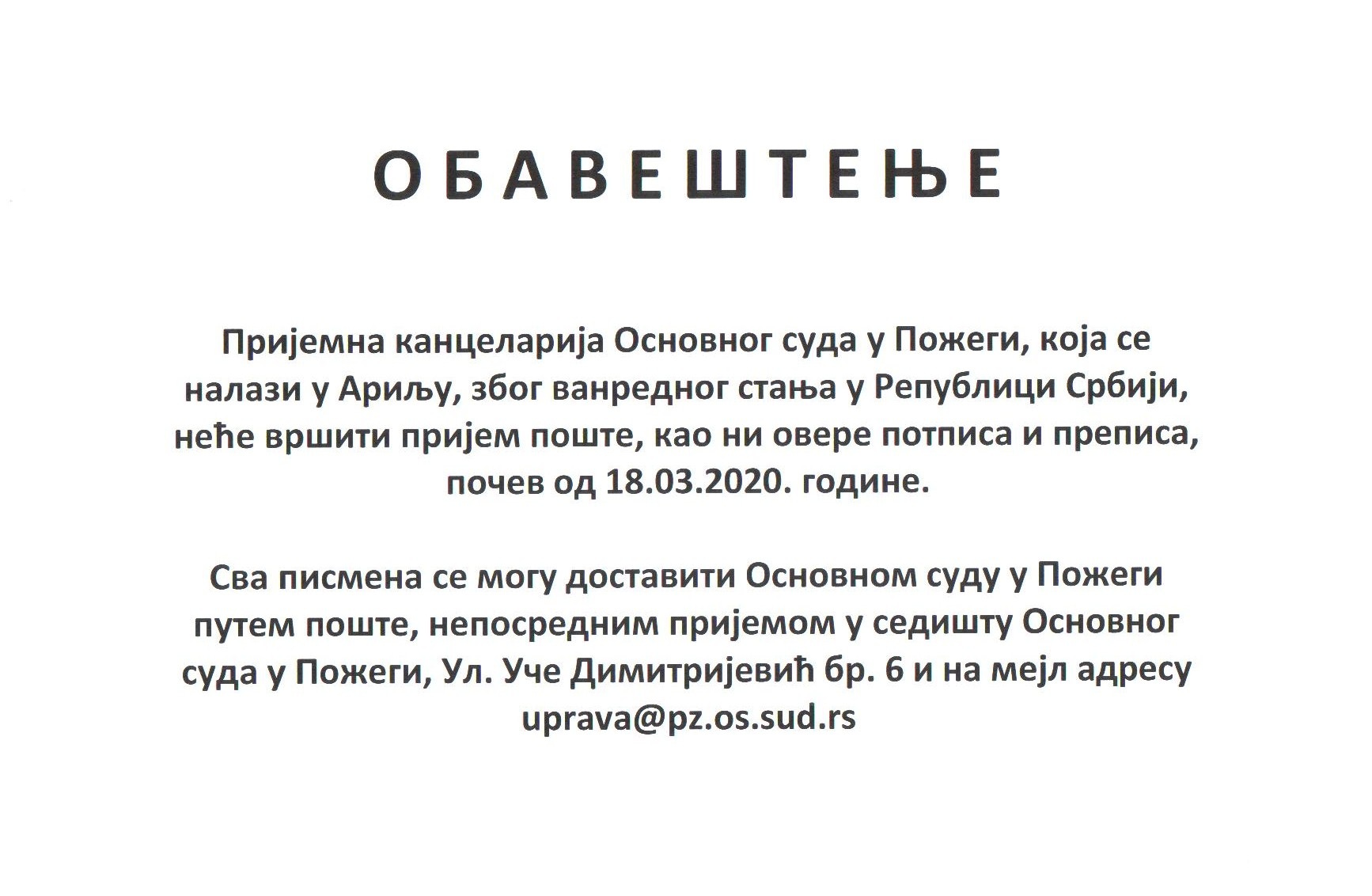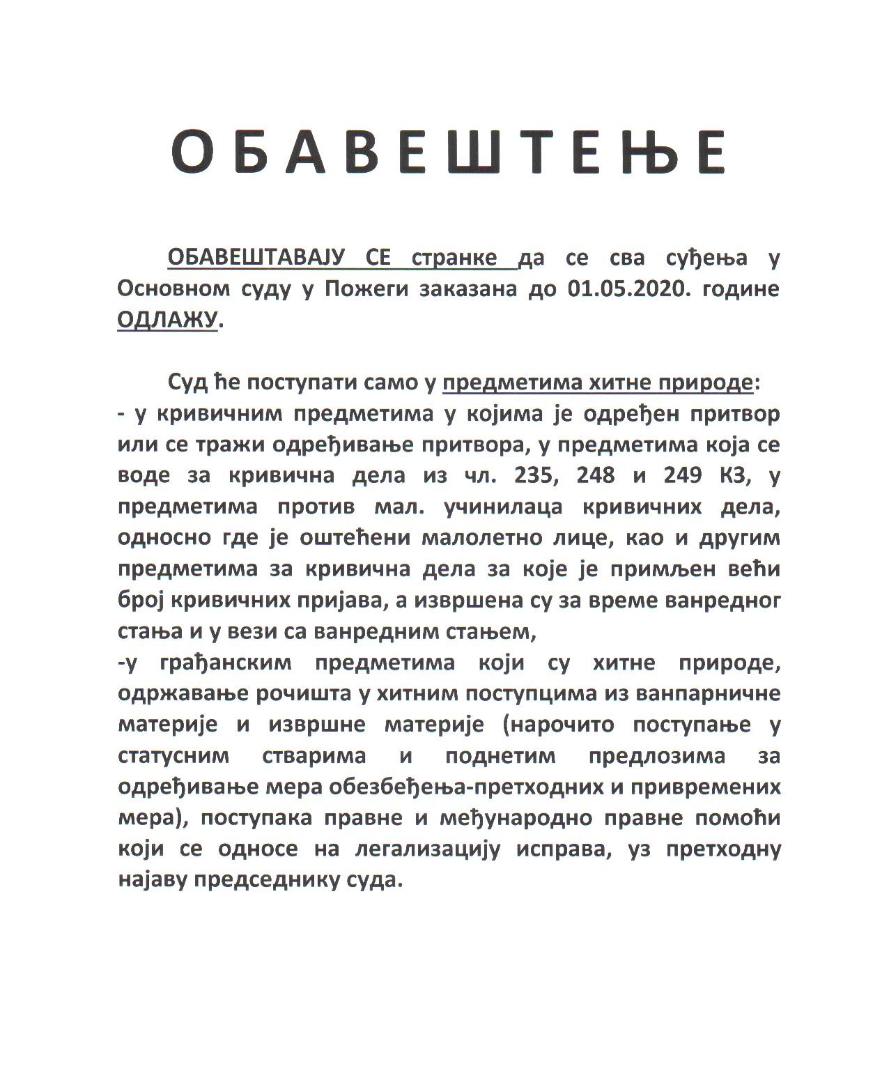 ОБАВЕШТЕЊЕ ЗА СТРАНКЕ