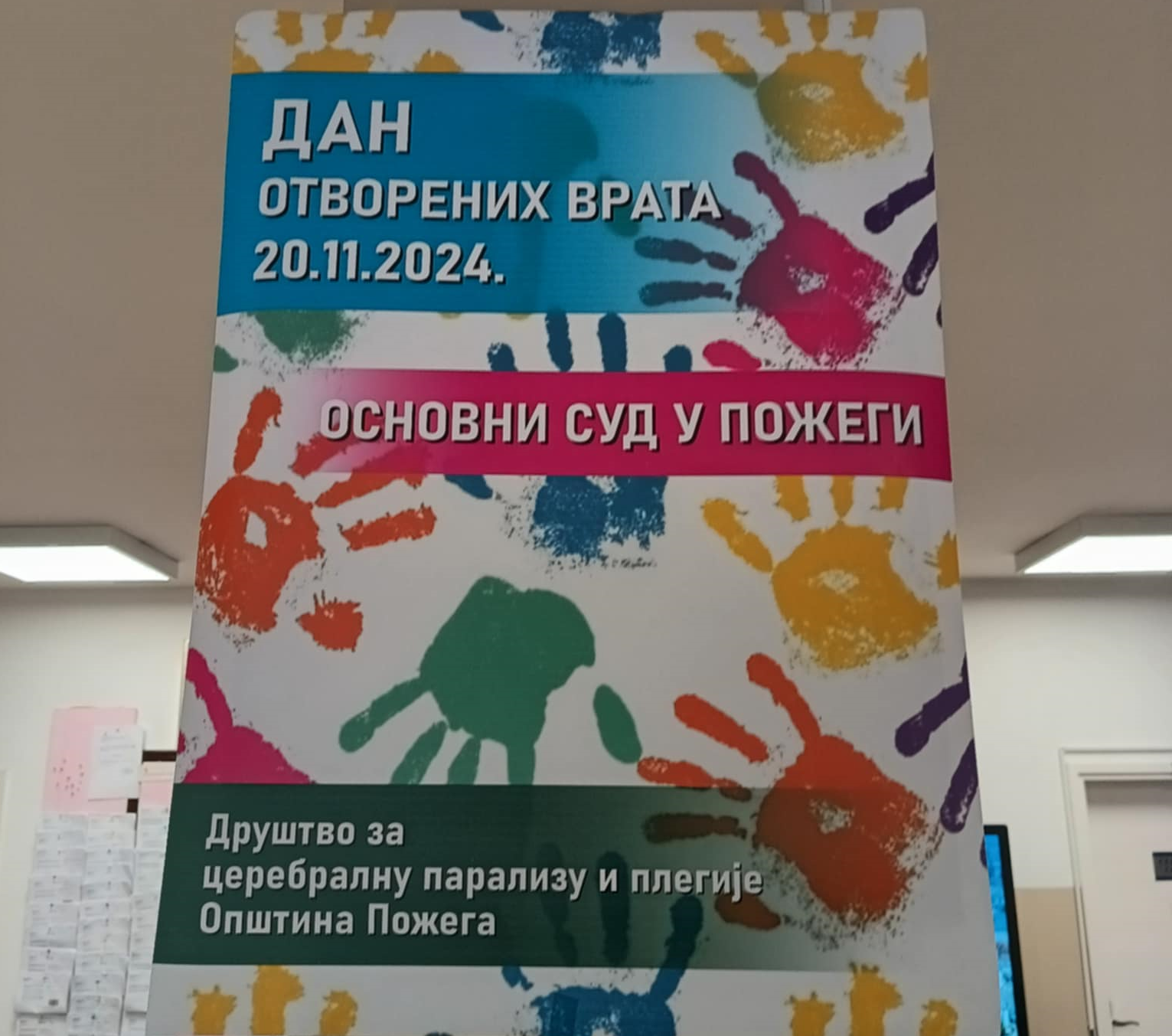 Основни суд у Пожеги отворио је своја врата прошле недеље, 20. новембра, корисницима Друштва за церебралну парализу и плегије општина Пожега и члановима њихових породица. Они су имали прилику да обиђу суд и упознају се са начином на који функционише, као и да присуствују суђењима из грађанске материје.
